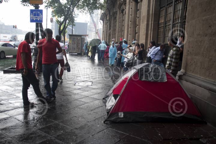 MÉXICO, D.F., 09MAYO2012.- En la calle 20 de Noviembre comenzaron desde la madrugada de hoy a hacer fila decenas de fanáticos de Paul Mccartney en espera de que mañana habran los accesos a la plancha del Zócalo capiltalino donde el ingles ofrecera un concierto en el marco de la gira "On the Road". Por la mañana el sol y por la tarde un aguacero, no mermo los animos de los seguidores del exBeatle, incluso algunos pusieron tiendas de campaña para pasar la noche. FOTO: FRANCISCO RODRÍGUEZ /CUARTOSCURO.COM