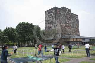 MÉXICO, D.F., 11MAYO2012.- Actividades lúdicas en la explanada de rectoría en donde los estudiantes se divierten jugando al ping pog. FOTO: MOISÉS PABLO /CUARTOSCURO.COM