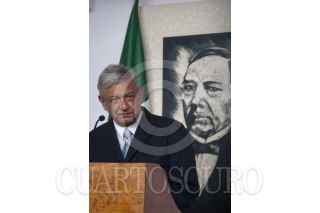 MÉXICO, D.F., 12MAYO2012.- Andrés Manuel López Obrador, candidato por la coalición Movimiento Progresista, durante la conferencia de prensa en donde informó del aumento, una vez más, del precio de las gasolinas. FOTO: ADOLFO VLADIMIR/CUARTOSCURO.COM