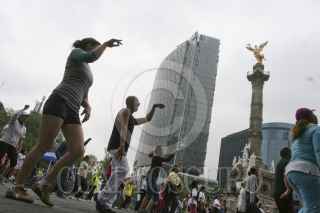 MÉXICO, D.F., 13MAYO2012.- Como parte del quinto aniversario del programa muevete en bici, se realizarton distintas actividades fisicas en el Ángel de la Independencia y Paseo de la reforma FOTO: JUAN PABLO ZAMORA /CUARTOSCURO.COM