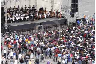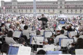 MÉXICO, D.F., 13MAYO2012.- La Orquesta Filarmónica de la Ciudad de México como parte del programa “ Conciertos Populares” se presentó en el Zócalo capitalino, bajo la dirección de José Areán. FOTO: CUARTOSCURO.COM