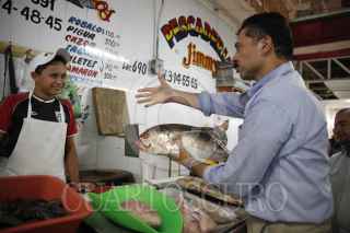 VILLAHERMOSA, TABASCO, 14MAYO2012.- Gerardo Priego, candidato al gobierno local por el PAN inicia su campaña política en el mercado público José María Pino Suárez. Ahí exhortó a los locatarios de porque es la mejor propuesta a ocupar la sucesión como mandatario estatal. FOTO: MARCO POLO GUZMÁN HERNÁNDEZ/CUARTOSCURO.COM