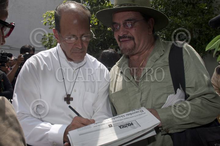 MÉXICO, D.F., 15MAYO2012.- La mañana de hoy el Padre Alejandro Solalinde, Director del Centro de ayuda a migrantes "Hermanos en el Centro de Ixtepec" anunció su salida del país por motivos de agenda y un "Repliegue Táctico" ante la serie de amenanzas de muerte que ha recibido en los últimos meses el activista de los derechos de los migrantes. El destino del Padre Solalinde será Europa donde acudira a una serie de encuentros con Amnistía Internacional. FOTO: FRANCISCO RODRÍGUEZ /CUARTOSCURO.COM