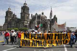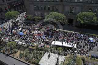 MÉXICO, D.F., 15MAYO2012.- Maestros, organizaciones sociales y miembros del Sindicato Mexicano de Electricistas marcharon de sobre calles de la ciudad de México hasta la Plaza de la Constitución, donde realizaron un mitin en conmemoración por el Día del Maestro. En la imagen, Azael Santiago, líder de la sección 22 del CNTE de Oaxaca. FOTO: ISAAC ESQUIVEL /CUARTOSCURO.COM