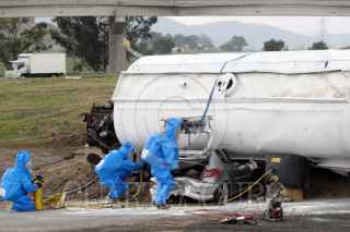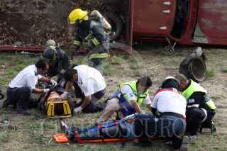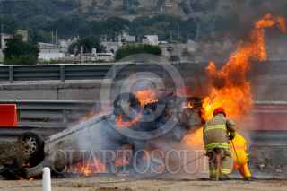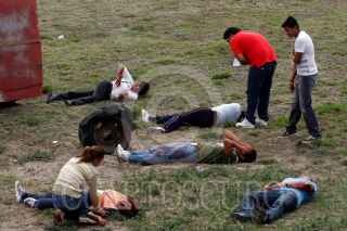 PUEBLA, PUEBLA, 15MAYO2012.- Elementos de CAPUFE, paramédicos de cruz roja, protección civil estatal, SUMA, bomberos y elementos del ejército mexicano, participaron en un simulacro de accidente por alcance múltiple, en el que se involucraron tres automóviles particulares, un camión de redilas y una pipa que transportaba material químico; en el kilómetro 138 de la autopista Puebla-Orizaba. FOTO: HILDA RIOS /CUARTOSCURO.COM