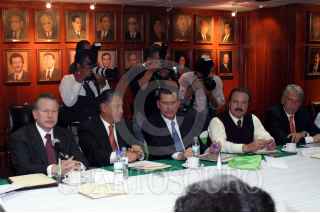MEXICO D.F. 01MARZO2005.- Roberto Madrazo, dirigente priísta, Leonardo Rodriguez Alcaine, lider sindical y Emilio Chuayffet, diputado federal del PRI, se reunieron con gobernadores en su sede nacional, previo a su Asamblea Nacional. FOTO: Moisés Pablo/CUARTOSCURO.COM