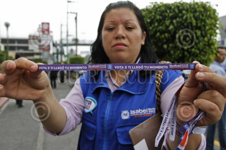 MÉXICO, D.F., 17MAYO2012.- Isabel Miranda de Wallace, candidata del PAN al Gobierno del Distrito Federal, repartió propaganda y pegó calcomanías a automóviles en el cruce de las avenidas Miramontes y Calzada del Hueso, al sur de la ciudad de México. FOTO: ISAAC ESQUIVEL /CUARTOSCURO.COM