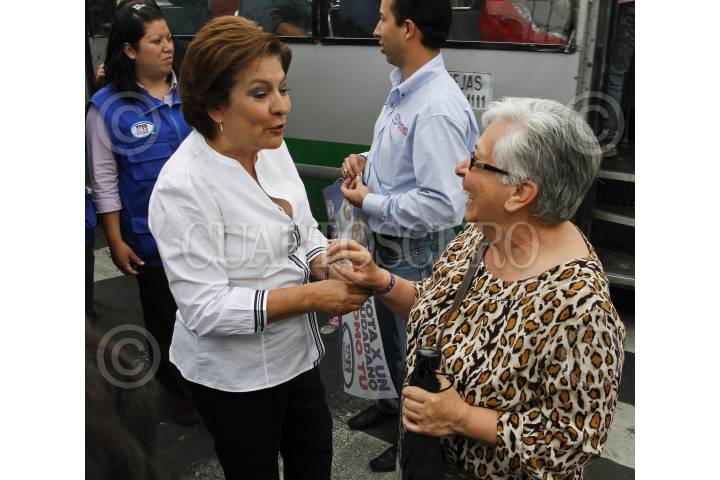 MÉXICO, D.F., 17MAYO2012.- Isabel Miranda de Wallace, candidata del PAN al Gobierno del Distrito Federal, repartió propaganda y pegó calcomanías a automóviles en el cruce de las avenidas Miramontes y Calzada del Hueso, al sur de la ciudad de México. FOTO: ISAAC ESQUIVEL /CUARTOSCURO.COM