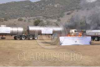 ZAPOPAN, JALISCO, 18MAYO2012.- Salomón Chertorivski, secretario de Salud, atestiguo la destrucción de 65, 000 litros de bebidas adulteradas, que fueron incautadas en diferentes operativos de la Cofepris en conjunto con la Hacienda. Le acompañaron el comisionado de Cofrepris Mikel Arreola, y secretario de salud estatal. FOTO: EDUARDO MORALES/CUARTOSCURO.COM