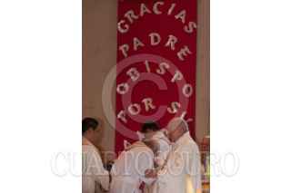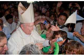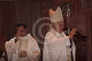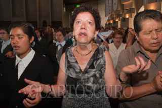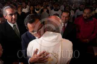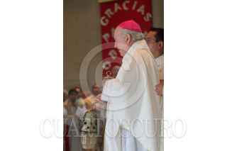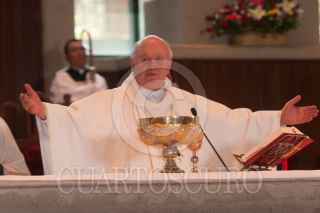 SAN CRISTOBAL ECATEPEC, ESTADO DE MÉXICO 18MAYO2012.- Onesimo Cepeda ofició su última misa como Obispo en funciones en la Catedral de Ecatepec, donde fue ovacionado por sus feligreses, algunos funcionarios locales y sacerdotes. En los próximos días viajará a Italia para vacionar y relajarse dijo. FOTO: JUAN PABLO ZAMORA /CUARTOSCURO.COM