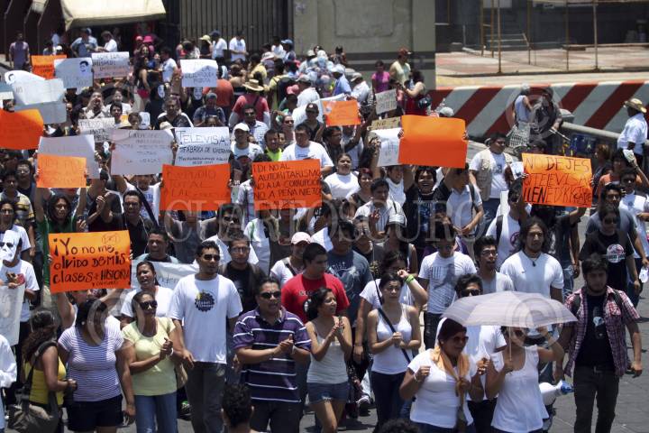 VERACRUZ, VERACRUZ., 19MAYO2012.- Cientos de personas, principalmente estudiantes, realizaron la marcha "Anti Peña Nieto" por las principales calles del Puerto de Veracruz en donde exigieron transparencia en la campaña del candidato presidencial priísta, así como objetividad por parte de los medios de comunicación. FOTO: FÉLIX MÁRQUEZ /CUARTOSCURO.COM