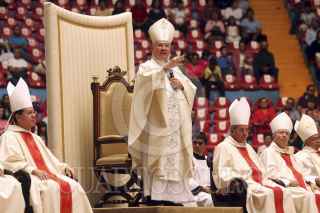 GUADALAJARA, JALISCO, 20MAYO2012.- El Arzobispo de Guadalajara, José Francisco Robles Ortega encabezo la Ordenación Sacerdotal de un grupo de Diáconos, la ceremonia tuvo lugar en el Auditorio Benito Juárez de esta ciudad. FOTO: FERNANDO CARRANZA GARCÍA /CUARTOSCURO.COM