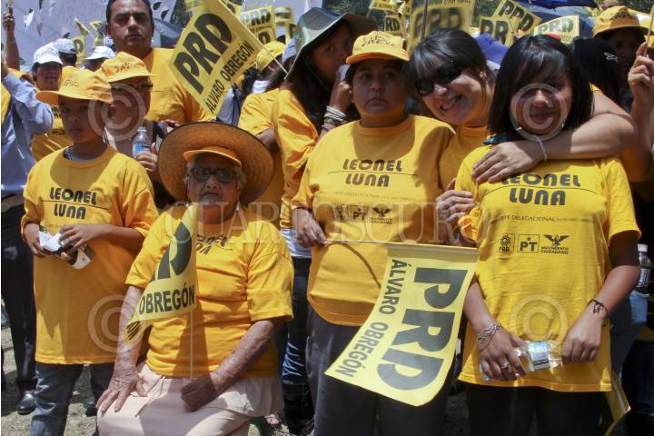 MÉXICO, D.F., 20MAYO2012.- Jesús Zambrano, dirigente nacional del PRD junto a Eduardo Santillan, candidato a diputado por el distrito XVIII; Miguel Ángel Mancera, candidato a la jefatura de gobierno; Marcelo Ebrard Casaubon, Jefe de gobierno capitalino y Leonel Luna, durante el inicio de Campaña de Luna como candidato a la jefatura delegacional en Alvaro Obregón. FOTO: ENRIQUE ORDÓÑEZ /CUARTOSCURO.COM