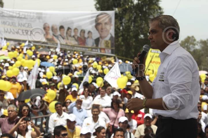 MÉXICO, D.F., 20MAYO2012.- Jesús Zambrano, dirigente nacional del PRD junto a Eduardo Santillan, candidato a diputado por el distrito XVIII; Miguel Ángel Mancera, candidato a la jefatura de gobierno; Marcelo Ebrard Casaubon, Jefe de gobierno capitalino y Leonel Luna, durante el inicio de Campaña de Luna como candidato a la jefatura delegacional en Alvaro Obregón. FOTO: ENRIQUE ORDÓÑEZ /CUARTOSCURO.COM