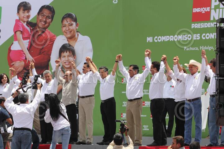 PACHUCA, HIDALGO, 20MAYO2012.- Enrique Peña Nieto, candidato a la presidencia por el PRI y PVEM, saludó a simpatizantes priistas al termino de su mitin realizado en la Plaza de toros de Pachuca. FOTO: SAÚL LÓPEZ /CUARTOSCURO.COM