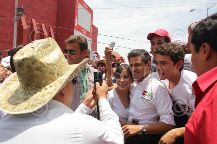PACHUCA, HIDALGO, 20MAYO2012.- Enrique Peña Nieto, candidato a la presidencia por el PRI y PVEM, saludó a simpatizantes priistas al termino de su mitin realizado en la Plaza de toros de Pachuca. FOTO: SAÚL LÓPEZ /CUARTOSCURO.COM
