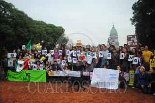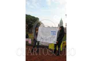 BUENOS AIRES, ARGENTINA, 20MAYO2012.- Cerca de un centenar de personas se reunieron esta tarde en la Plaza del Congreso de la capital argentina para mostrar su apoyo al candidato Andrés Manuel López Obrador, convocados por medio de la asociación civil MORENA. Ésta es solo una de las marchas organizadas a nivel mundial con este mismo propósito. FOTO: MARÍA VALTIERRA /CUARTOSCURO.COM