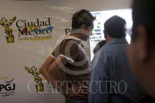 MÉXICO, D.F., 21MAYO2012.- La Procuraduría General de Justicia del Distrito Federal presentó a cuatro presuntos implicados en la trata de personas, la cual operaba en el Hotel Roma. Según las autoridades, en la acción fueron rescatadas 27 mujeres, cinco menores de edad y 22 adultas, que eran obligadas a ejercer la prostitución. En la imagen, familiares de los detenidos se despiden de ellos, cuando protestaban por su detención a las afueras de la Procuraduría capitalina. FOTO: ADOLFO VLADIMIR/CUARTOSCURO.COM