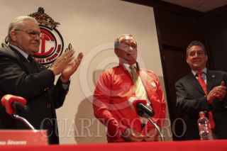 TOLOCA, ESTADO DE MÉXICO.- Enrique Meza, fue presentado por los Diablos Rojos del Toluca, como su nuevo entrenador. "El Ojitos Meza" firmó por lo menos durante un año para dirigir al equipo. FOTO: LUIS VÁZQUEZ/CUARTOSCURO.COM
