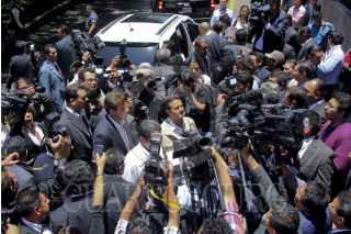 MÉXICO, D.F., 22MAYO2012.- Enrique Peña Nieto, candidato del PRI a la presidencia de la república a su salida del encuentro que mantuvo en el foro Unidos para cambiar México en el club de Industriales. FOTO: SAÚL LÓPEZ /CUARTOSCURO.COM