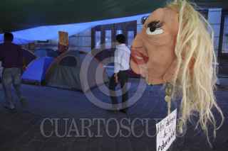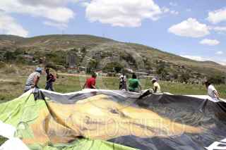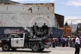 OAXACA, OAXACA, 22MAYO2012.- Maestros de la Sección 22 iniciaron este martes con el retiro de propaganda electoral ubicada en la avenida Símbolos Patrios. Los profesores de la región de la Cañada treparon a las torres en las que se ubicaban los espectaculares y los bajaron sin importar a que partido pertenecieran. FOTO: ARTURO PÉREZ ALFONSO /CUARTOSCURO.COM