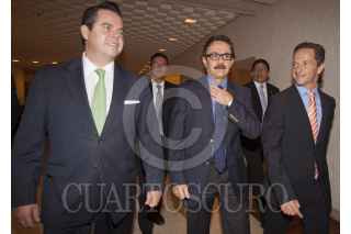 MÉXICO, D.F., 23MAYO2012.- Gabriel Quadri De la Torre, candidato de Nueva Alianza a la Presidencia de la República, asistió a una reunión con el Consejo de la Comunicación, fué recibido por Salvador Villalobos, presidente ejecutivo del Consejo de la Comunicación y Pablo González Guajardo, Presidente de ese organismo. FOTO: JUAN PABLO ZAMORA /CUARTOSCURO.COM