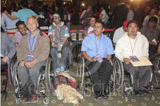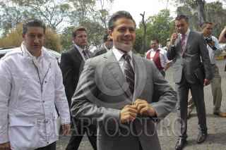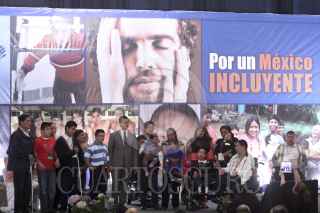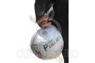MÉXICO, D.F., 23MAYO2012.- Una persona de logística, del candidato a la presidencia Enrique Peña Nieto, sostiene un balón de fútbol con el logotipo del PRI. FOTO: SAÚL LÓPEZ /CUARTOSCURO.COM