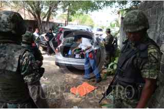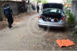 ACAPULCO, GUERRERO, 23MAYO2012.- Elementos policiacos reportaron el hallazgo de dos sujetos encajuelados en un vehículo compacto modelo Focus color plateado con placas HFH-10-03 en la avenida Prolongación de Las Torres, cerrada de El Monque, en el acceso a la tercera de la unidad habitacional El Coloso, en la zona conurbada donde al lugar llegaron elementos de la marina y del ejecito mexicano donde resguardaron el área para la espera de la autoridad ministerial para realizar las investigaciones de ley del lugar de los hechos los cuerpos fueron trasladados al servicio médico forense. FOTO: BERNANDINO HERNANDEZ /CUARTOSCURO.COM