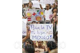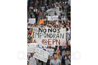 MÉXICO, D.F., 23MAYO2012.- Miles de estudiantes se manifestaron por una cobertura informativa imparcial entorno a las candidaturas a la Presidencia de la República. FOTO: ISAAC ESQUIVEL /CUARTOSCURO.COM