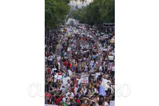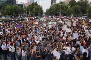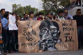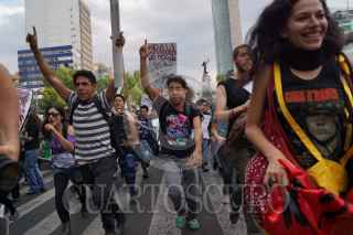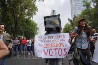 MÉXICO, D.F., 23MAYO2012.- Estudiantes de distintas universidades los cuales integran el movimiento "Somos 132", realizaron una protesta en la Estela de Luz, de ahí realizaron una caminata por la calle de Reforma. FOTO: PEDRO ANZA /CUARTOSCURO.COM