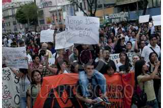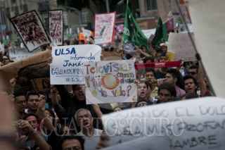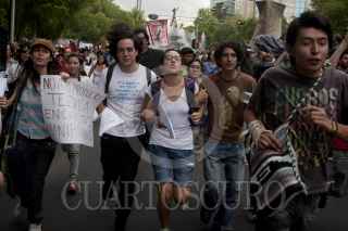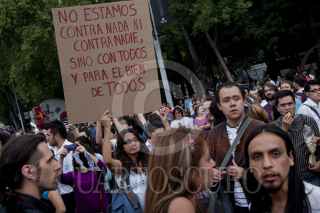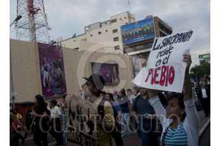 MÉXICO, D.F., 23MAYO2012.- Estudiantes de diversas universidades públicas y privadas del país, aglutinados en el llamado movimiento "Somos 132", se manifestaron en contra de la manipulación de los medios de comunicación y en contra del candidato del PRI, Enrique Peña Nieto. Marcharon de la Estela de Luz al Zócalo, pasando por Televisa Chapultepec en donde se mantuvieron un momento. FOTO: ADOLFO VLADIMIR /CUARTOSCURO.COM