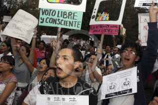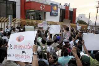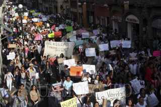 PUEBLA, PUEBLA, 23MAYO2012.- Como parte de la convocatoria a nivel nacional "Somos 132", jóvenes universitarios marcharon por las calles del centro de la ciudad para exigir la transparencia en la información de diversos medios de comunicación. FOTO: HILDA RIOS /CUARTOSCURO.COM