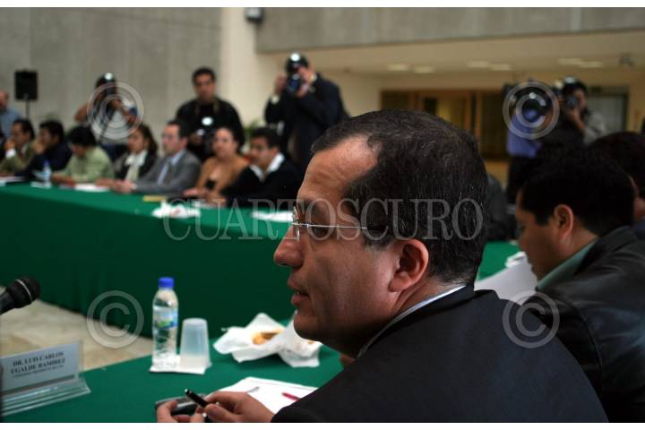 MEXICO, D.F. 08MARZO2005.- Reunion de las comisiones unidas de gobernacion, asuntos indigenas y de población con el IFE, en la Cámara de Diputados. En la imagen, Julian Angulo Gongora, José González, Rodrigo Morales Manzanos, Luis Carlos Ugalde y Juan Antonio Guajardo. FOTO: Sandra Perdomo/CUARTOSCURO.COM
