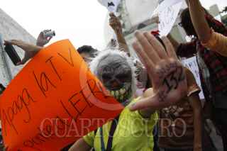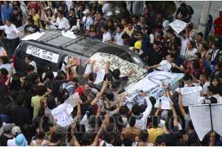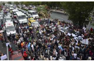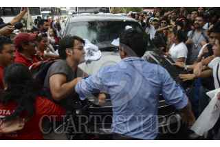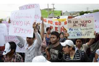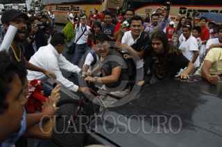 QUERETARO, QUERETARO, 24MAYO2012.- Durante el mitín del candidato de la coalición "Compromiso por México", Enrique Peña Nieto, se suscitó una manifestación de jóvenes que protestaba por la visita del priísta. FOTO: HUGO CAMACHO /CUARTOSCURO.COM