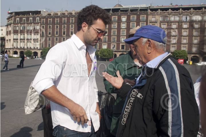 MÉXICO, D.F., 26MAYO2012.- El abogado, Alvaro Duarte Cue, la esposa del actor, Rogelio Guerra, la señora Maribel de Guerra y sus hijos, Carlo y Aldo Guerra explican con comunicado a los simpatizante del actor la razón por la cual no se presentó a la marcha convocada para este Sábado, en su apoyo debido a que Azteca Novelas le pidió al actor llegar a un acuerdo y que para que este llegara a buen término el debía desistirse de acudir al Zócalo esta mañana. Rogelio Guerra perdió un juicio contra la televisora del Ajusco por incumplimiento de contrato, por lo que la empresa se queda con el nombre artisitico de Hildegardo Francisco Guerra Martinez, su verdadero nombre, además deberá pagar una suma cercana a los 36 millones de pesos, por lo que estaban a punto de perder su casa por embargo de la televisora. La esposa de Rogelio Guerra agradeció las muestras de apoyo y pidio a los simpatizantes que acudieron a la plaza de la Constitución esperar a que concluyan las negociaciones. FOTO: FRANCISCO RODRÍGUEZ /CUARTOSCURO.COM