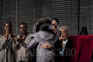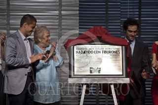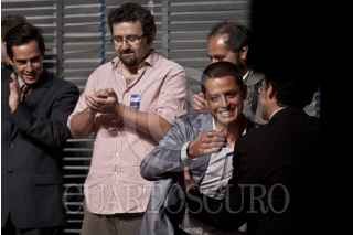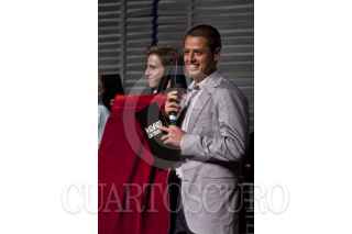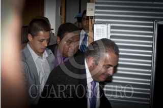MÉXICO, D.F., 26MAYO2012.- En medio de malos entendidos entre medios de comunicación y la producción de la obra de Teatro "Nadando entre Tiburones" se develó la noche de hoy la placa conmemorativa de las 100 representaciones, acción que realizó el jugador de futbol, Javier "El Chicharito" Hernández, quien entró y salió sin saludar a sus admiradores que lo esperaron más de dos horas en espera de un autógrafo y sin dar declaraciones a la prensa por la puerta de atrás del Teatro de los Insurgentes. FOTO: FRANCISCO RODRÍGUEZ /CUARTOSCURO.COM
