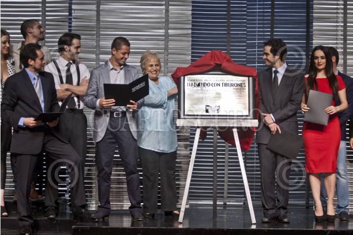 MÉXICO, D.F., 26MAYO2012.- En medio de malos entendidos entre medios de comunicación y la producción de la obra de Teatro "Nadando entre Tiburones" se develó la noche de hoy la placa conmemorativa de las 100 representaciones, acción que realizó el jugador de futbol, Javier "El Chicharito" Hernández, quien entró y salió sin saludar a sus admiradores que lo esperaron más de dos horas en espera de un autógrafo y sin dar declaraciones a la prensa por la puerta de atrás del Teatro de los Insurgentes. FOTO: FRANCISCO RODRÍGUEZ /CUARTOSCURO.COM
