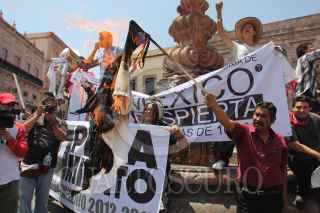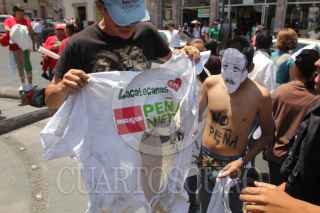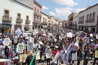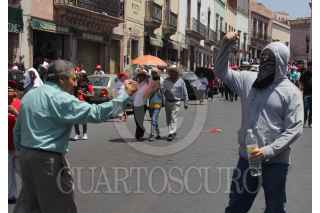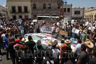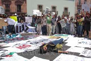 ZACATECAS, ZACATECAS, 27MAYO2012.- Activistas del movimiento estudiantil “Yo Soy 132” se manifestaron en calles aledañas a la Plaza de Armas donde el candidato a la presidencia Enrique Peña Nieto, realizó un su mitin de campaña. FOTO: SAÚL LÓPEZ /CUARTOSCURO.COM