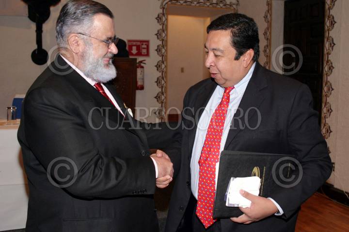 MEXICO, D.F., 09MARZO2005.- José Luis Soberanes, presidente de la Comisión Nacional de Derechos Humanos y José Espina Reyes, presidente del Consejo Ciudadano para la Seguridad Pública, se reunieron en el 4º Foro Nacional de Seguridad Justicia y Paz. FOTO: Moisés Pablo/CUARTOSCURO.COM