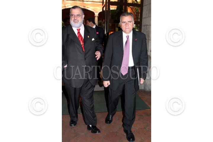MEXICO, D.F., 09MARZO2005.- José Luis Soberanes, presidente de la Comisión Nacional de Derechos Humanos y José Espina Reyes, presidente del Consejo Ciudadano para la Seguridad Pública, se reunieron en el 4º Foro Nacional de Seguridad Justicia y Paz. FOTO: Moisés Pablo/CUARTOSCURO.COM