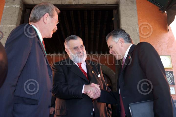 MEXICO, D.F., 09MARZO2005.- José Luis Soberanes, presidente de la Comisión Nacional de Derechos Humanos y José Espina Reyes, presidente del Consejo Ciudadano para la Seguridad Pública, se reunieron en el 4º Foro Nacional de Seguridad Justicia y Paz. FOTO: Moisés Pablo/CUARTOSCURO.COM