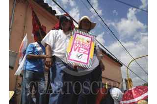 HUAJUAPAN, OAXACA, 27MAYO2012.- Una joven porta un letrero con la leyenda "Amlo te doy mi primera vez", en referencia a su primera participación en las próximas elecciones presidenciales, esto durante una mitin de Andrés Manuel López Obrador, candidato a la Presidencia de la República por los partidos de izquierda. FOTO: ELEAZAR TORRES /CUARTOSCURO.COM