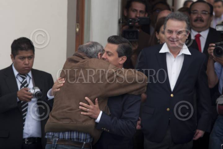 MÉXICO, D.F., 28MAYO2012.- Enrique Peña Nieto, candidato presidencial de la Coalición Compromiso Por México, se reunió con el Movimiento por la Paz Con Justicia y Dignidad, encabezado por Javier Sicilia. Al final fue increpado por Trinidad Ramírez, del Frente de los Pueblos en Defensa de la Tierra, de San Salvador Atenco, a quien Peña Nieto le pidió disculpas, en respuesta la esposa de Ignacio del Valle, lider de los ejidatarios, le dijo que no se las recibía, que ella quería justicia para las mujeres violadas en la intervención policial en 2006 en San Salvador Atenco. FOTO: JUAN PABLO ZAMORA /CUARTOSCURO.COM