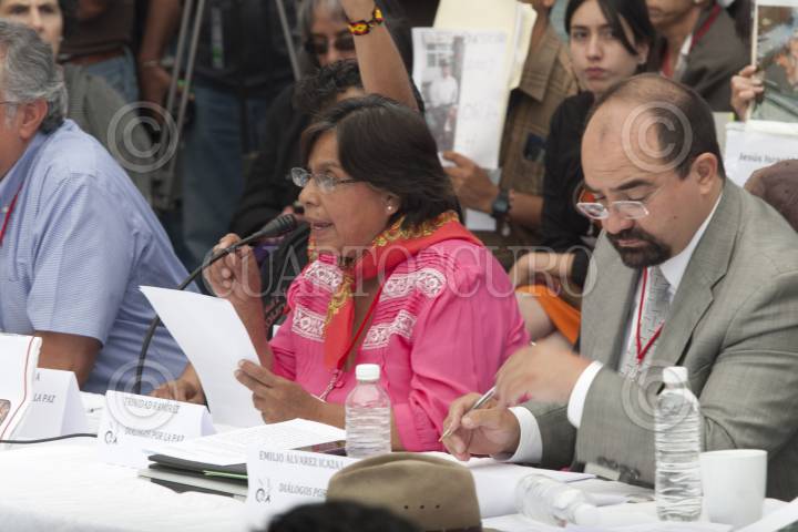 MÉXICO, D.F., 28MAYO2012.- Enrique Peña Nieto, candidato presidencial de la Coalición Compromiso Por México, se reunió con el Movimiento por la Paz Con Justicia y Dignidad, encabezado por Javier Sicilia. Al final fue increpado por Trinidad Ramírez, del Frente de los Pueblos en Defensa de la Tierra, de San Salvador Atenco, a quien Peña Nieto le pidió disculpas, en respuesta la esposa de Ignacio del Valle, lider de los ejidatarios, le dijo que no se las recibía, que ella quería justicia para las mujeres violadas en la intervención policial en 2006 en San Salvador Atenco. FOTO: JUAN PABLO ZAMORA /CUARTOSCURO.COM