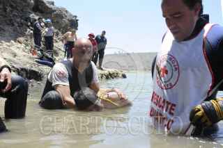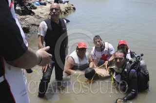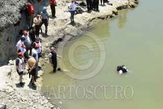 TEPOTZOTLAN, ESTADO DE MÉXICO, 28MAYO2012.- Felipe Ángel González Ortega de 17 años y Fernando Cruz García de 19 años, perdieron la vida el día de ayer, tras volcar la camioneta en la que viajaban propiedad de la CFE en la presa La Concepción. Elementos de rescate acuático de Cruz Roja lograron el rescate de los cuerpos. FOTO: LUIS CARBAYO /CUARTOSCURO.COM