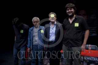 MÉXICO, D.F., 29MAYO2012.- Los actores, Sophie Alexander, Sergio Bonilla, Roberto Sosa R., Fernando Bonilla y Héctor Bonilla mostraron su adhesión y simpatía al movimiento #YoSoy132, durante la conferencia de prensa de la obra de teatro "Almacenados" donde Héctor Bonilla y Sergio Bonilla son los estelares, alternan Fernando Bonilla y los actores Roberto Sosa R. padre de Roberto Sosa. La obra versa sobre el choque generacional entre un hombre a punto de jubilarse y su joven relevo. Ambos conviviran durante 5 días en la bodega el sitio de trabajo de ambos para llevar acabo el relevó de funciones. Esto los llevará a confrontar ideas y esquemas para darse cuenta de lo infame de sus vidas. FOTO: FRANCISCO RODRÍGUEZ /CUARTOSCURO.COM