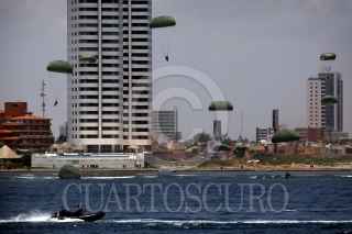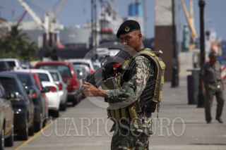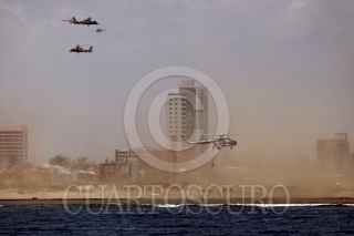 VERACRUZ, VERACRUZ., 29MAYO2012.- Elementos de la Secretaría de Marina Armada de México realizaron una demostración táctica previa a la que habrá de realizarse el 1 de Junio en conmemoración al Día de la Marina, en donde estará presente el presidente de la República, Felipe Calderón Hinojosa. La operación cuenta con diversas embarcaciones, aeronaves, vehículos terrestres y personal adiestrado en zona de combate. FOTO: FÉLIX MÁRQUEZ /CUARTOSCURO.COM