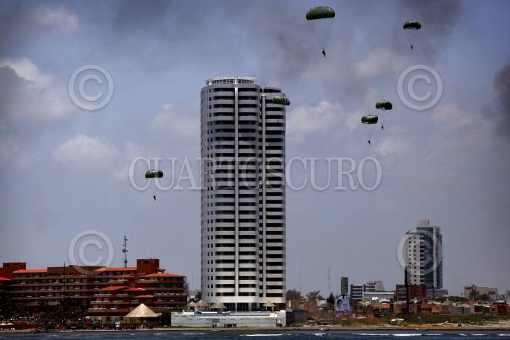 VERACRUZ, VERACRUZ., 29MAYO2012.- Elementos de la Secretaría de Marina Armada de México realizaron una demostración táctica previa a la que habrá de realizarse el 1 de Junio en conmemoración al Día de la Marina, en donde estará presente el presidente de la República, Felipe Calderón Hinojosa. La operación cuenta con diversas embarcaciones, aeronaves, vehículos terrestres y personal adiestrado en zona de combate. FOTO: FÉLIX MÁRQUEZ /CUARTOSCURO.COM