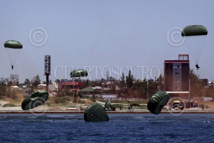 VERACRUZ, VERACRUZ., 29MAYO2012.- Elementos de la Secretaría de Marina Armada de México realizaron una demostración táctica previa a la que habrá de realizarse el 1 de Junio en conmemoración al Día de la Marina, en donde estará presente el presidente de la República, Felipe Calderón Hinojosa. La operación cuenta con diversas embarcaciones, aeronaves, vehículos terrestres y personal adiestrado en zona de combate. FOTO: FÉLIX MÁRQUEZ /CUARTOSCURO.COM