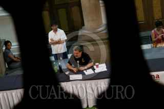 MÉXICO, D.F., 29MAYO2012.- Paco Ignacio Taibo II, tuvo un encuentro con miembros del Movimiento de Regeneración Nacional y público en general, en la cual externo sus opiniones en el contexto de "Los grandes problemas nacionales, diálogos por la regeneración del país", organizado en el Club de Periodistas del centro histórico. FOTO: ADOLFO VLADIMIR /CUARTOSCURO.COM